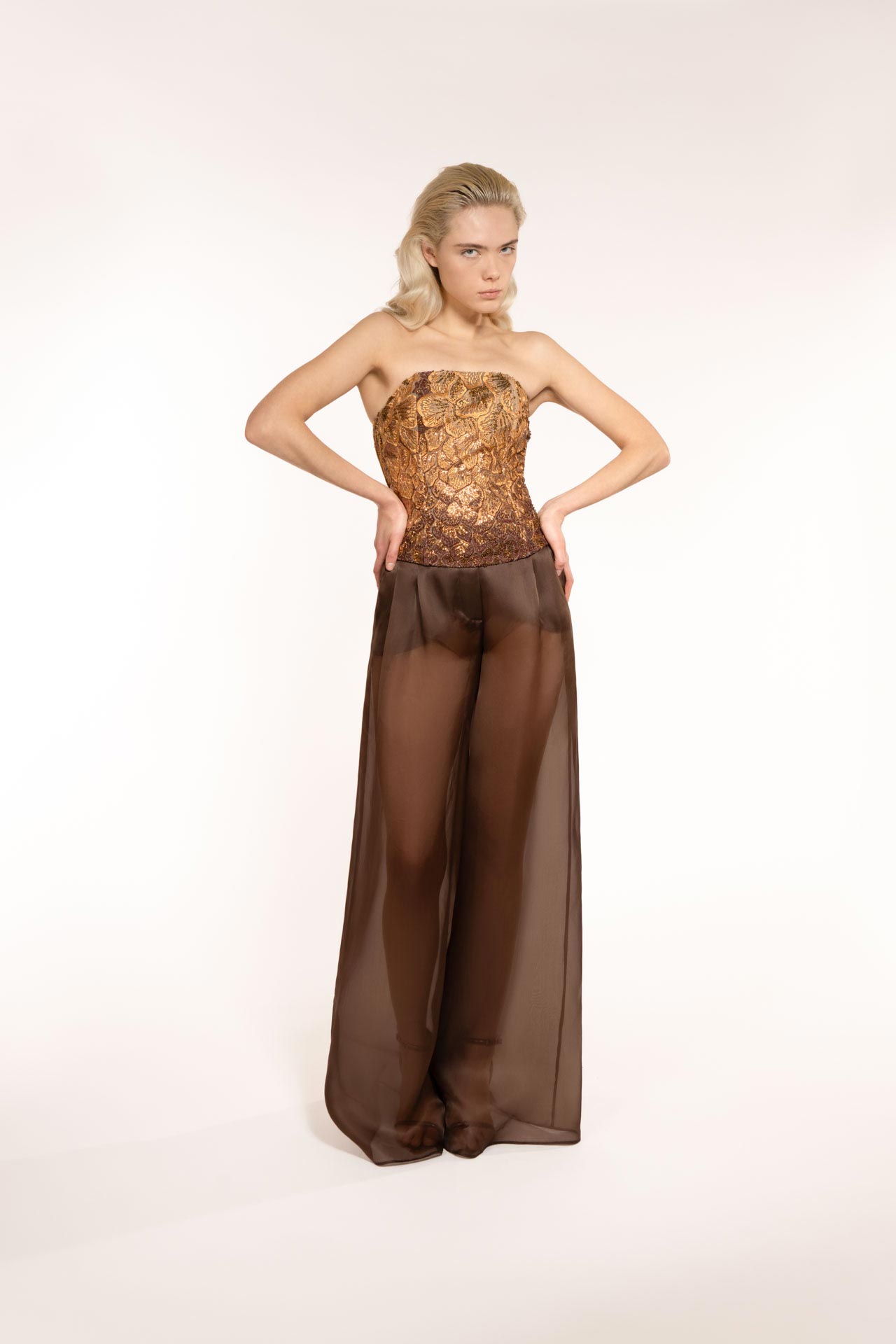 Corset made with structure and support stays. The embroidery is unique to the Maktub collection, created with the earth element in mind. Versatile for any occasion