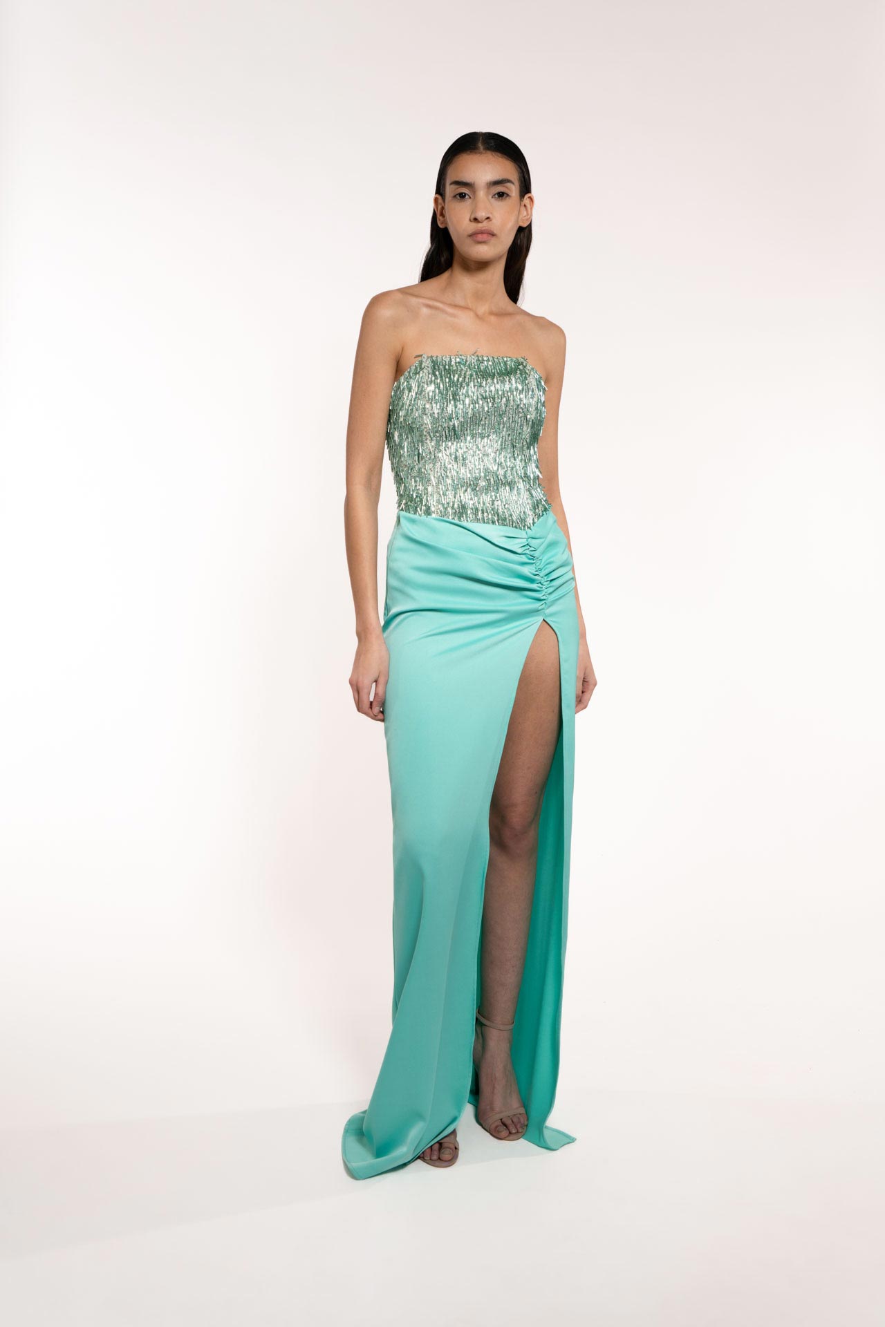 Skirt like a sarong, long with daily fabric. Versatile with a large slit and fabric knot that make it original and very feminine