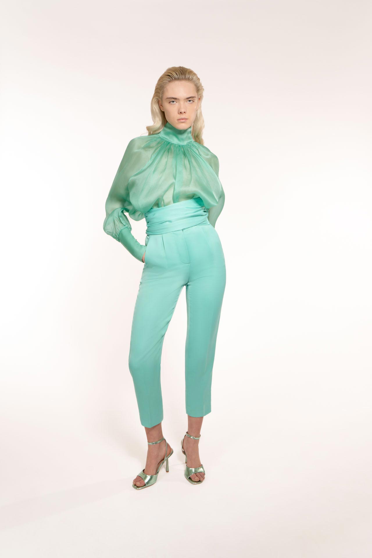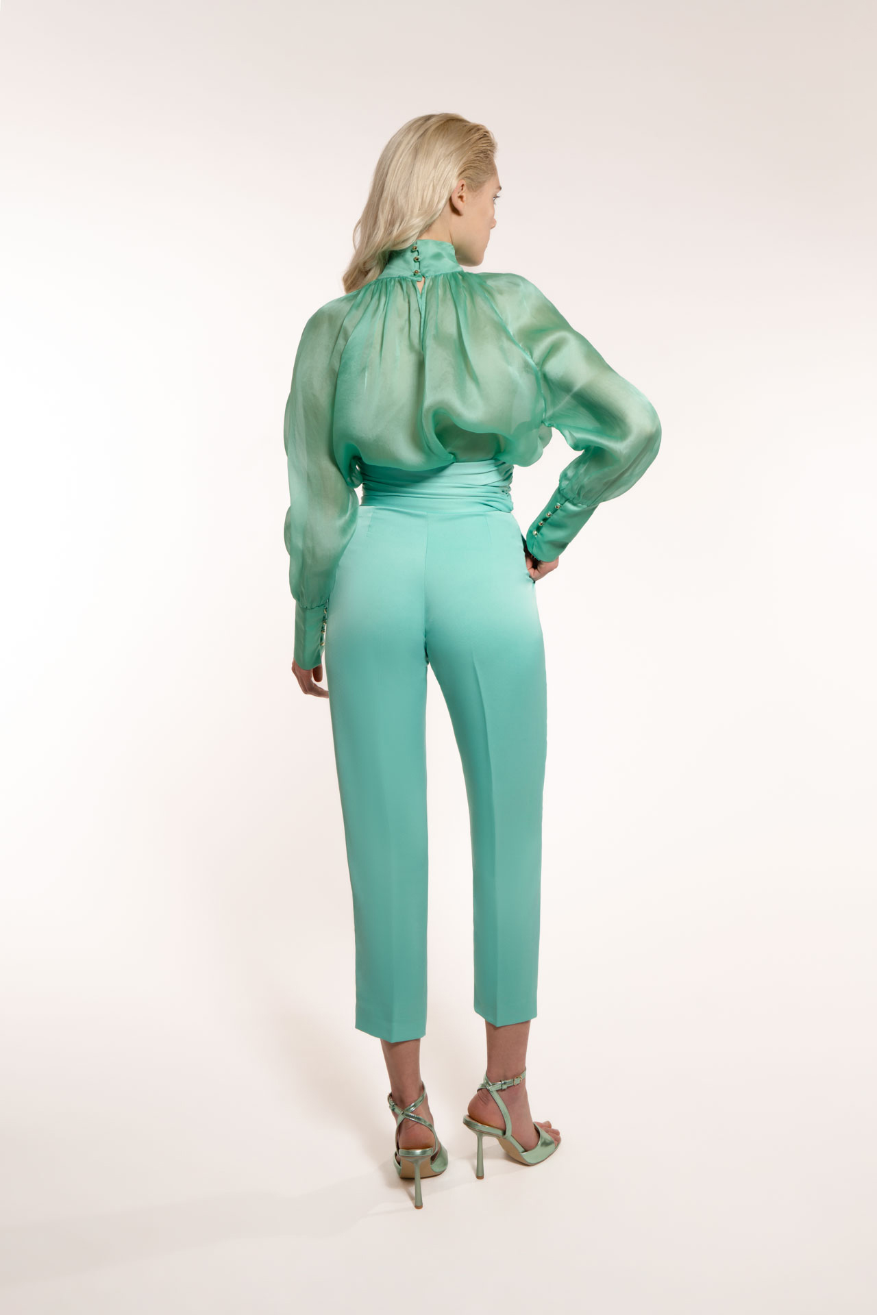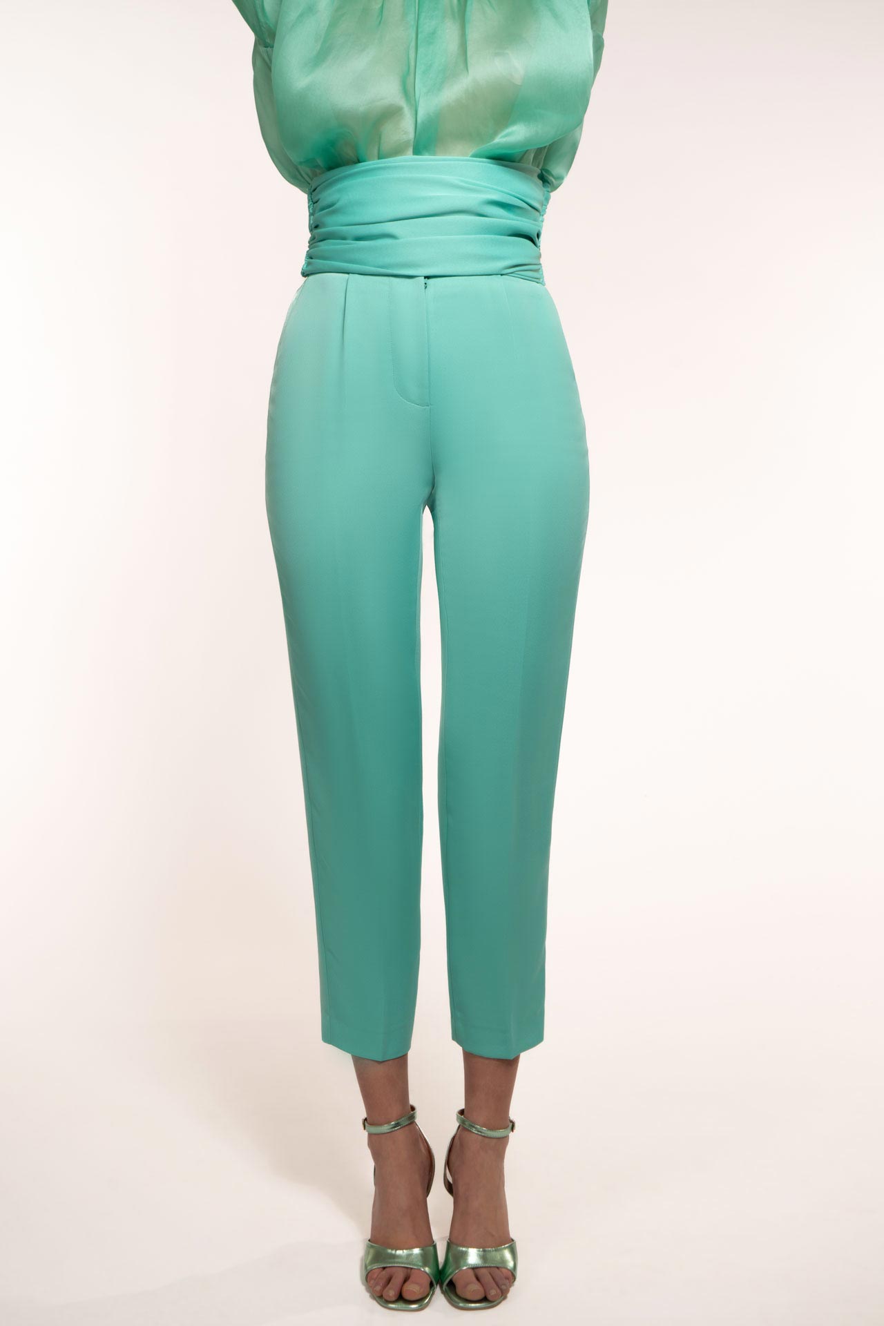 Trousers made with daily fabric to make it practical, elegant but less austere. perfect for day and evening. Tight, almost imperceptible in movement, which goes down to the ankle. Comfortable fit enriched by a tone-on-tone belt in the same fabric with hook closure to make it extremely binding and super chic