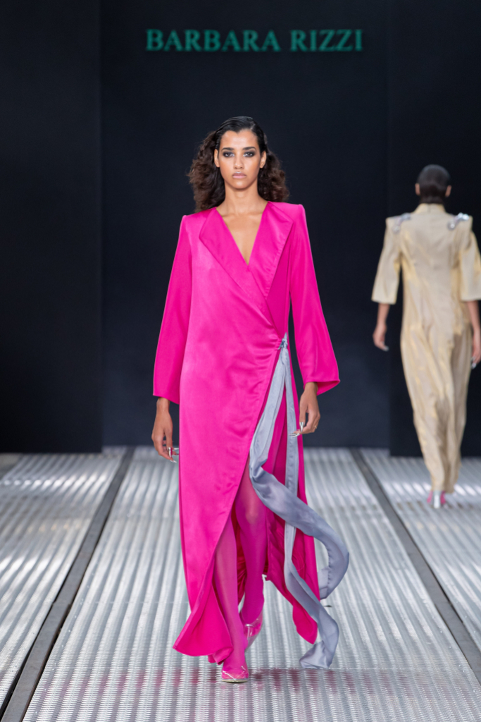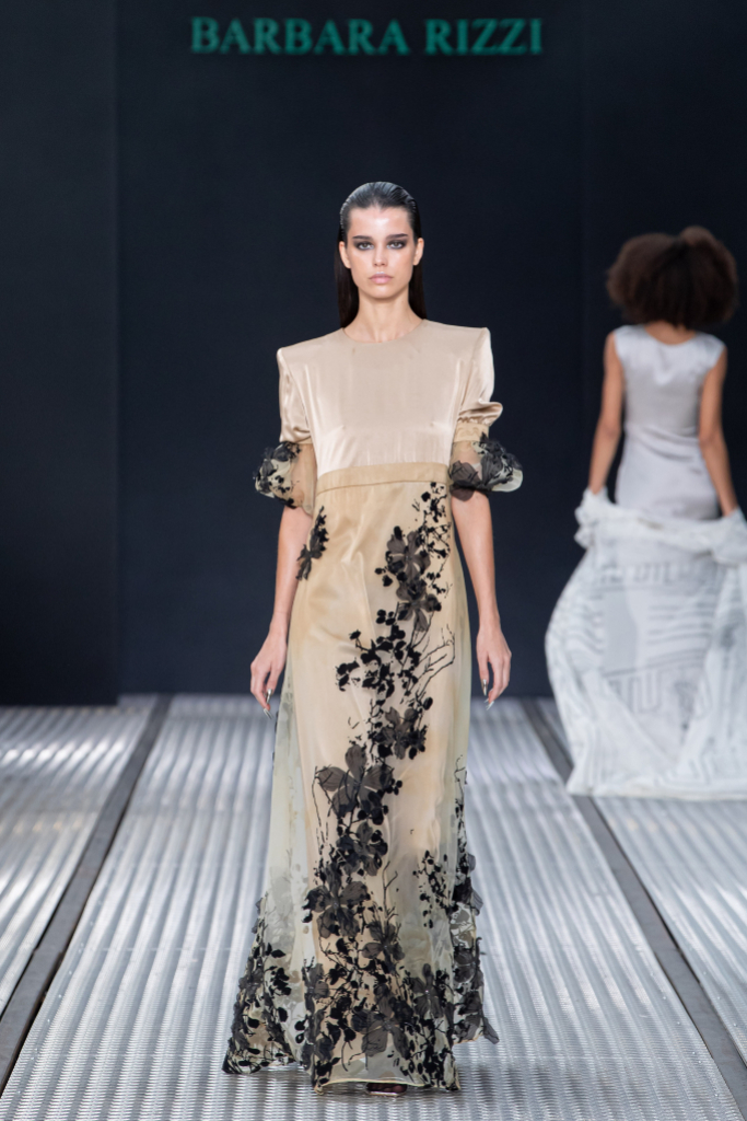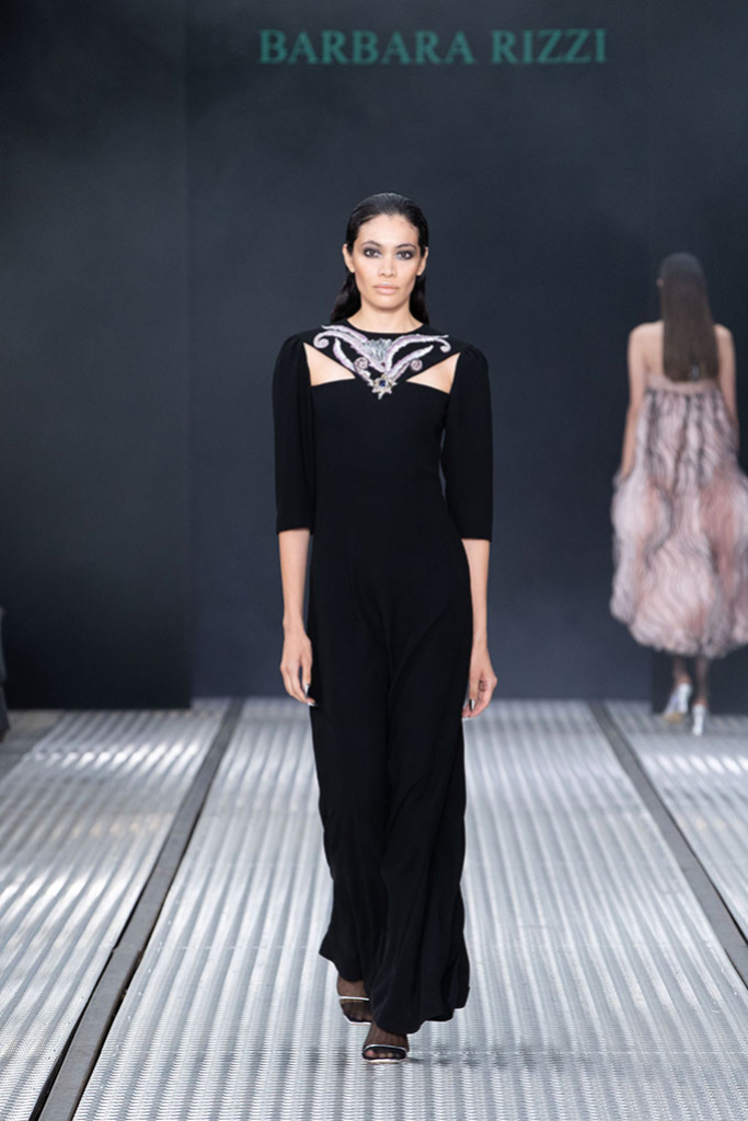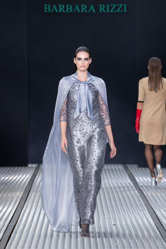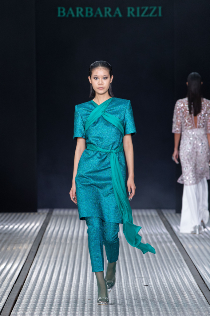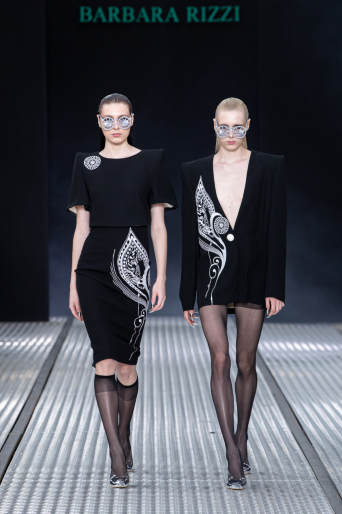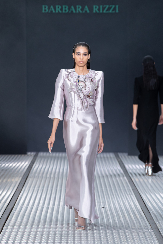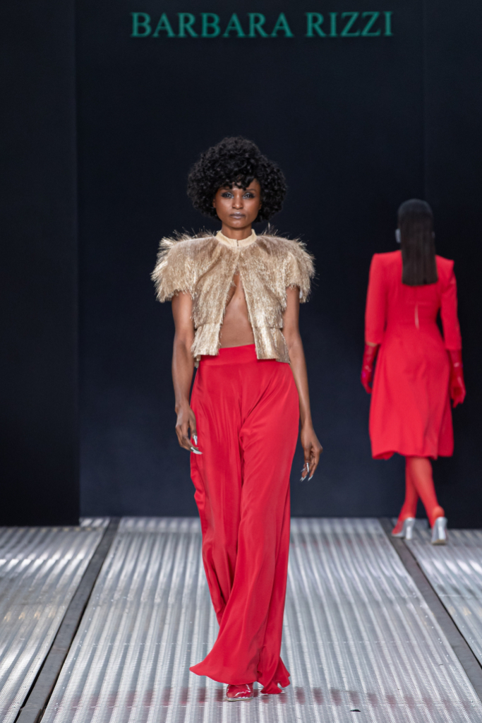 The collaboration with Vogue Italia further expanded the collection’s reach, as the event was live-streamed, enhancing Barbara Rizzi’s presence in the digital fashion space. The Rivair SS25 collection fused industrial design with high fashion luxury, featuring flowing dresses, tailored suits, and metallic accessories. Barbara Rizzi continues to reshape the future of fashion, offering a fresh perspective on strength, beauty, and modern luxury.