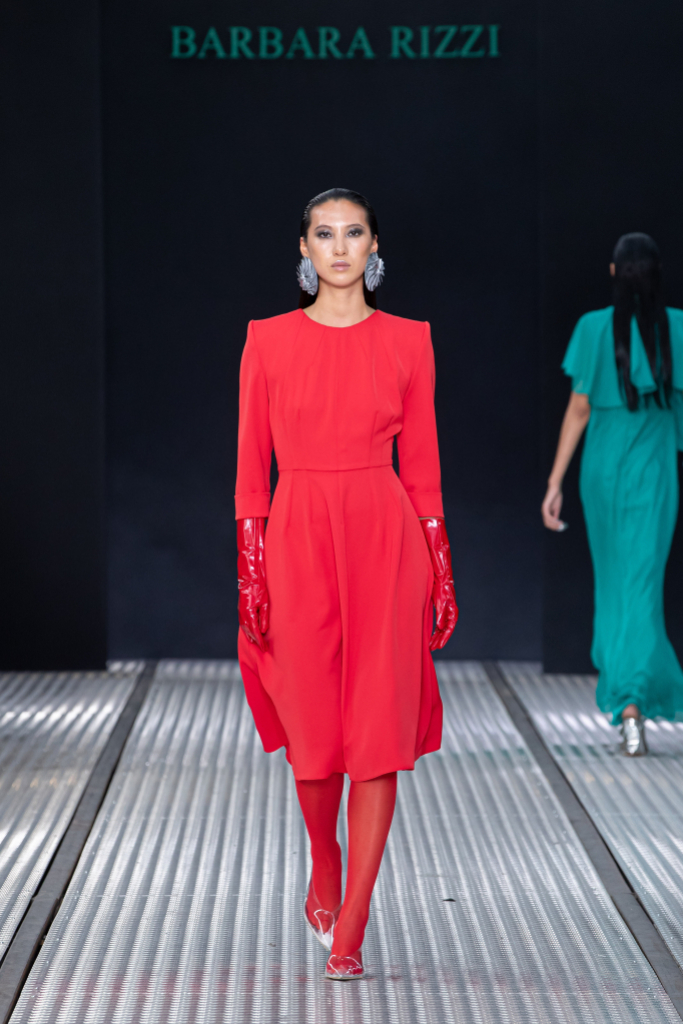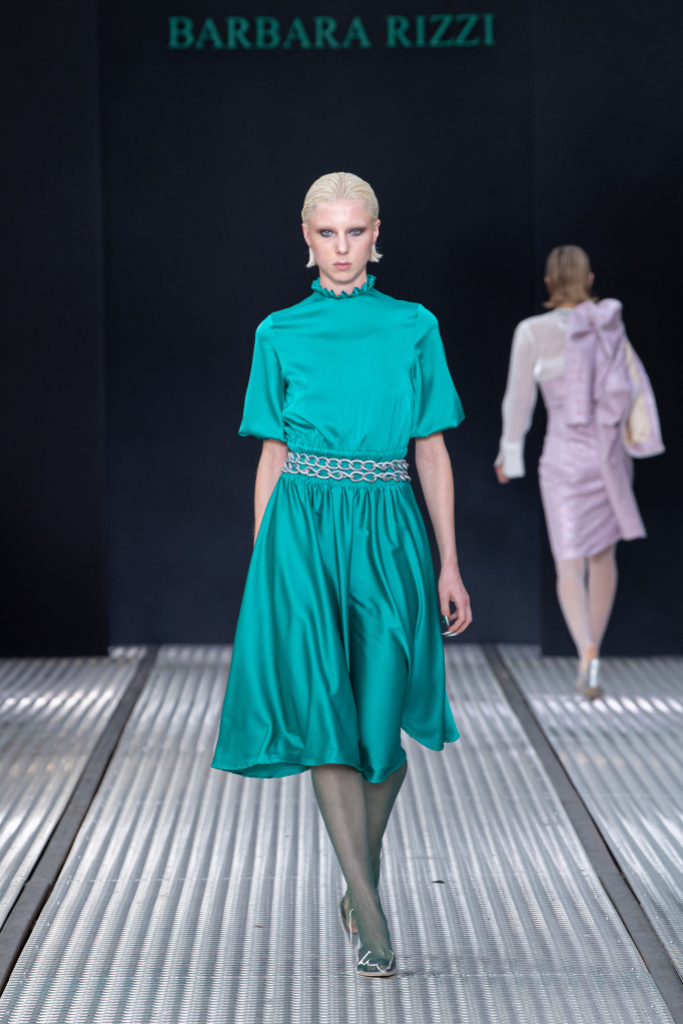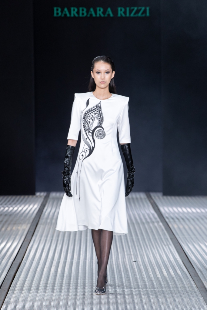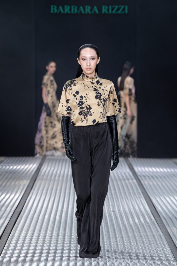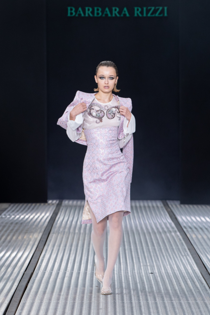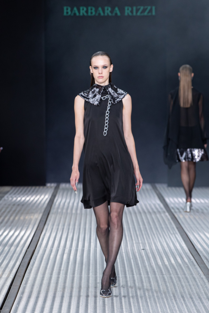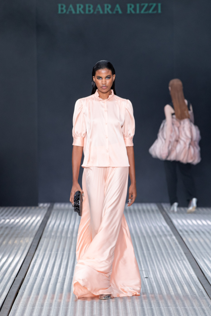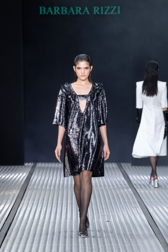 Barbara Rizzi’s Rivair SS25 collection was showcased at the National Museum of Science and Technology in Milan, set in a historic railway station. The venue’s industrial atmosphere perfectly complemented the collection’s theme of a contemporary woman—powerful, modern, and unapologetically elegant.